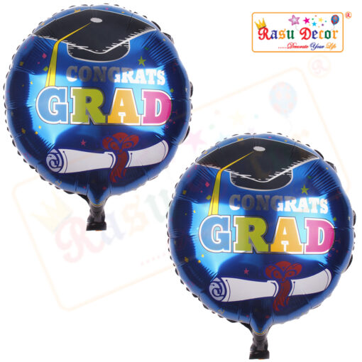 RasuDecor 2Pcs 18” Congrats Grad Circle shape Graduation Mylar Foil Balloon (45X45)cm