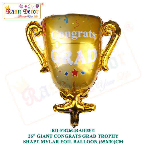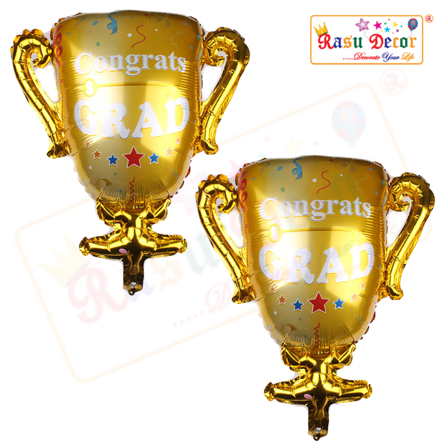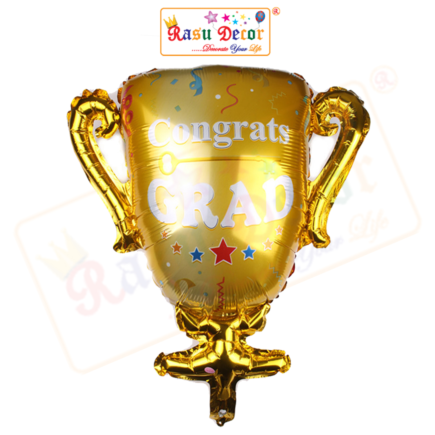RasuDecor 1Pc 26”Giant Trophy Shape Mylar Foil Balloon (65X30)cm for Graduation Decorations Cap Certifcate Roll Star Kindergarten, Preschool, College, University Class Party Décor #RasuImpex