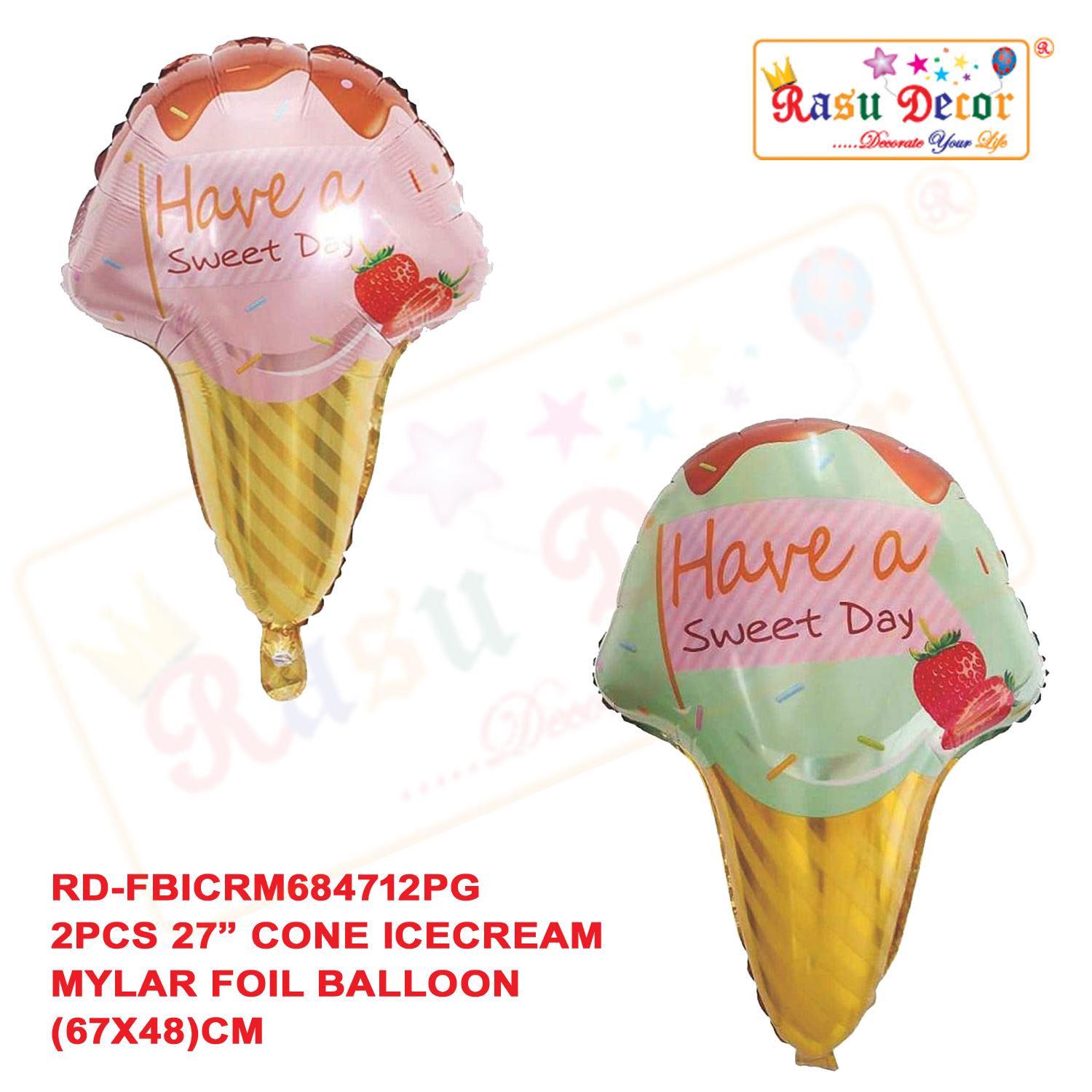 RasuDecor 2Pcs 27” Giant Scoop Sundae Ice Cream Mylar Foil Balloon (68×47)cm Pink