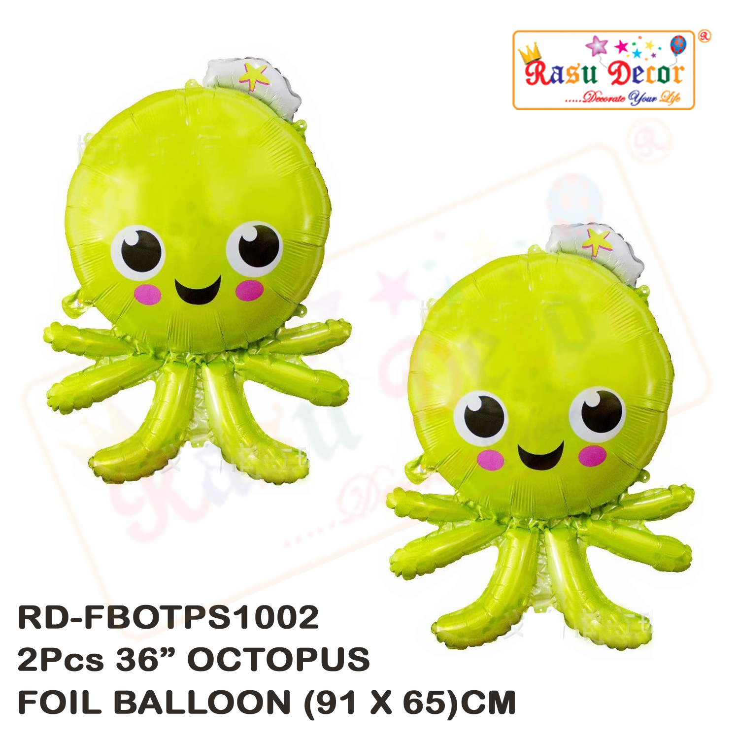 RasuDecor 1Pc 36” Giant Octopus Ocean Animals Under the Sea Theme Mylar Foil Balloons (91×65) cm