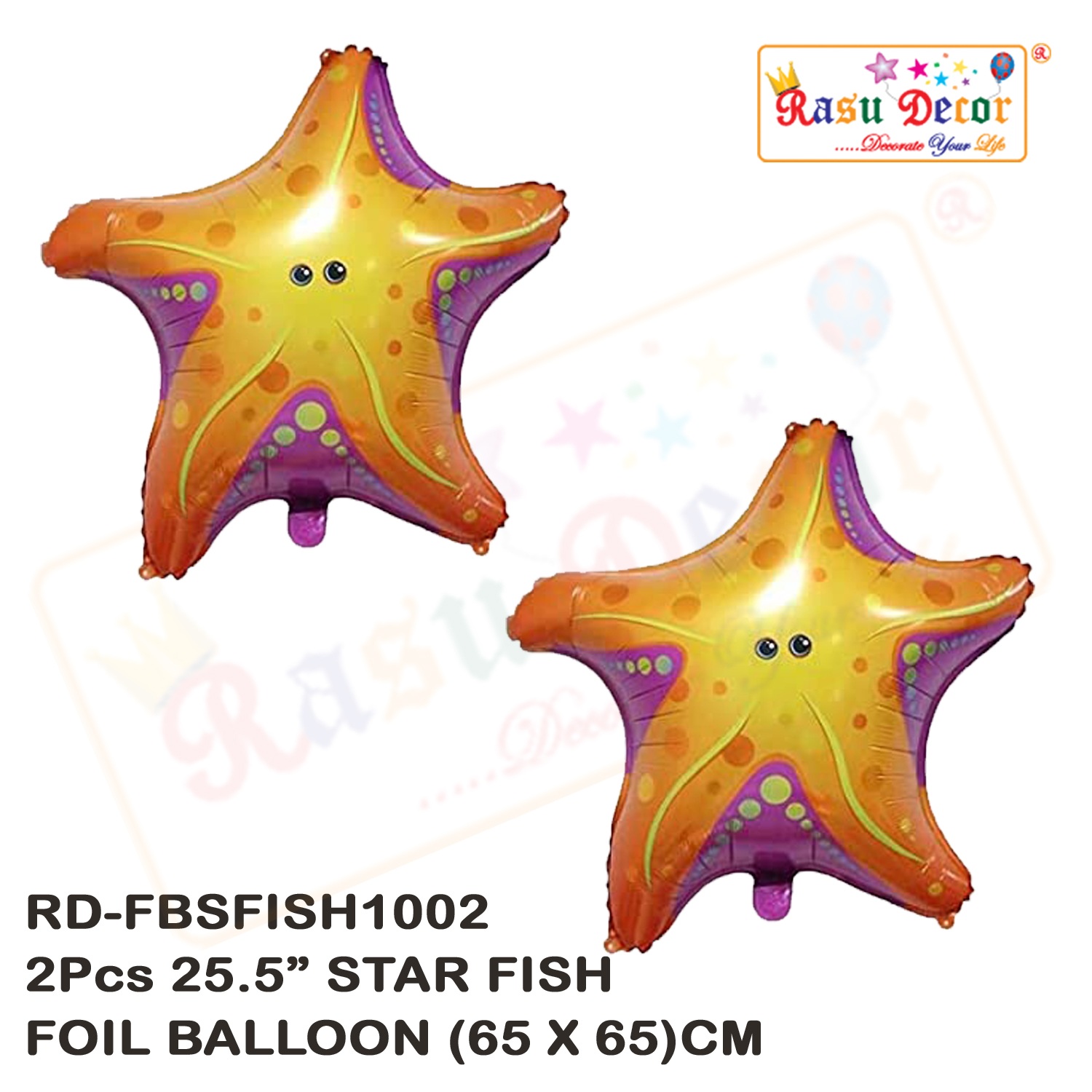 RasuDecor 2Pcs 25.5” Giant Star Fish Ocean Animals Under the Sea Theme Mylar Foil Balloons (65×65) cm