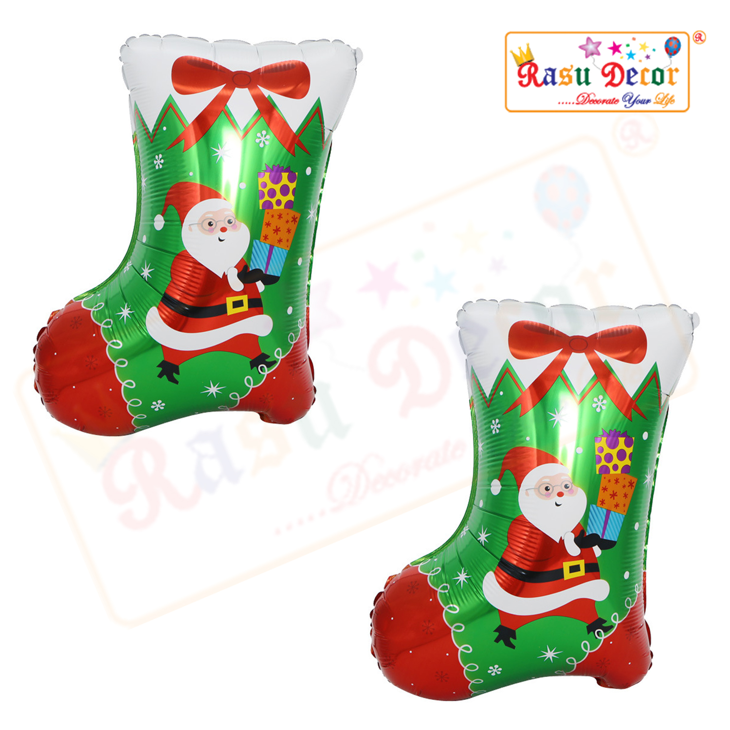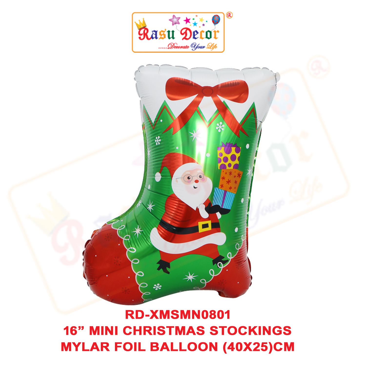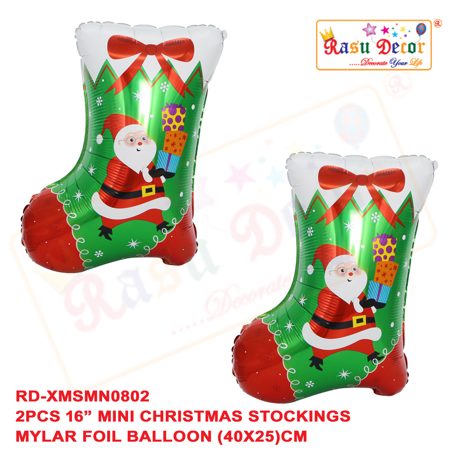 🍭【RasuDecor GREAT DEAL SET】You’ll get RasuDecor 2Pcs 16” Mini Christmas Stockings Mylar Foil Balloon Kit (40×25) cm. RasuDecor different patterned aluminum foil balloons, including Santa Claus/Snowman/Christmas Tree/Cane/Gift Box/Stockings/Unicorn/Bell Perfect party supplies and decorations!